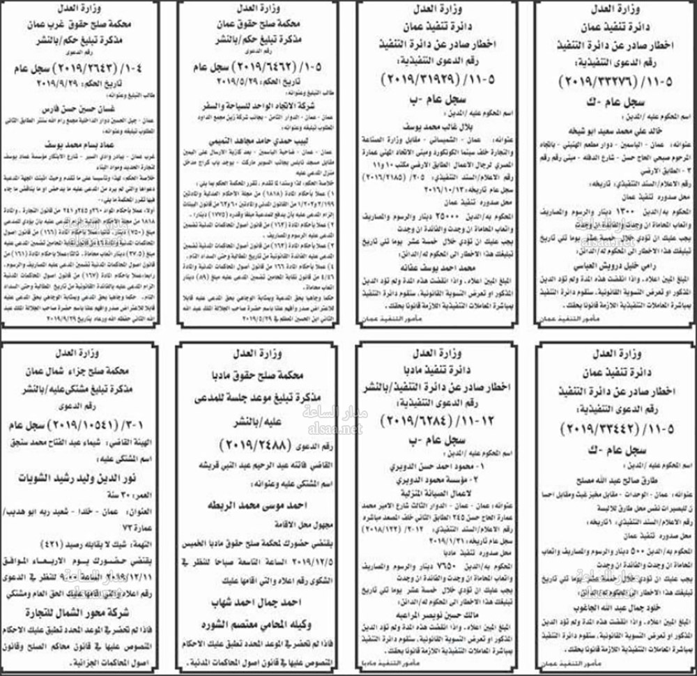 تنفيذ قضائي وإنذارات ومواعيد جلسات محاكمة أسماء